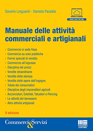 L'acquisto del manuale include l'accesso alla banca dati on line "Manuale delle attività commerciali e artigianali" del sito approfondimenti.maggioli.it. Utilizzando il codice alfanumerico allegato, è possibile consultare un ricco archivio documentale di normativa nazionale e regionale, circolari e risoluzioni ministeriali, tavole sinottiche riassuntive e aggiornamenti fino al 31/12/2016. All'interno del volume sono presenti le indicazioni per effettuare l'accesso alla banca dati. Il volume offre un quadro completo ed esaustivo della disciplina amministrativa sul commercio sia nelle forme tradizionali che nelle varie forme speciali - e sulle attività artigianali, sulla base dei principi fondamentali che il legislatore nazionale ha approvato negli ultimi anni. Questa seconda edizione arricchisce infatti l'opera di nuovi argomenti e contenuti, analizzando le più frequenti attività artigianali e divenendo, in tal modo, il più completo punto di riferimento bibliografico in materia. Vengono prese in esame, tra le altre, le attività di estetista, di acconciatore, di tatuatore e piercing. Particolare attenzione è dedicata anche alle attività che.